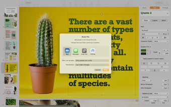 Una de las características más interesantes de Pages es que permite editar un documento de texto de forma simultánea por varios usuarios con solo estar conectado a Internet. Asimismo, una vez finalizado el proceso, es posible compartir el archivo resultante públicamente o solo con aquellos usuarios que se desee. También hay que decir que permite guardar dichos documentos en una gran variedad de formatos diferentes para que sean compatibles y visualizables en prácticamente cualquier otro programa.